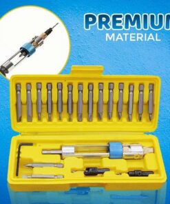 - PAKETTI SISÄLTÄÄ: 1 x puoliaikaporanterä, 8 x Phillips-terä (2 kpl: PH0,PH1,PH2,PH3), 8 x litteäpää (2 kpl: 1/8″, 3,2 mm, 5/32″ 4 mm, 3/16″, 6 mm, 2,4 mm, 8 mm. Upotusterät (3/32″ 2,4 mm, 1/8″ 3,2 mm), 1 x kuusiokoloavain, 1 x kotelo (7,6 x 3″ / 19,4 x 7,4 cm)