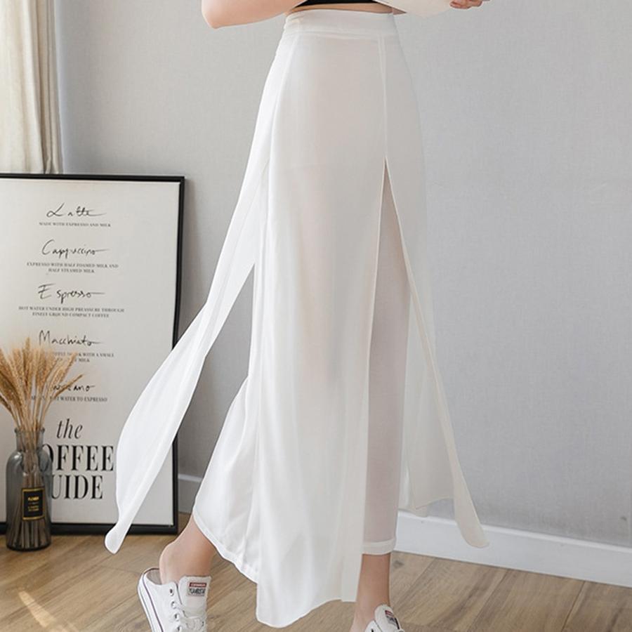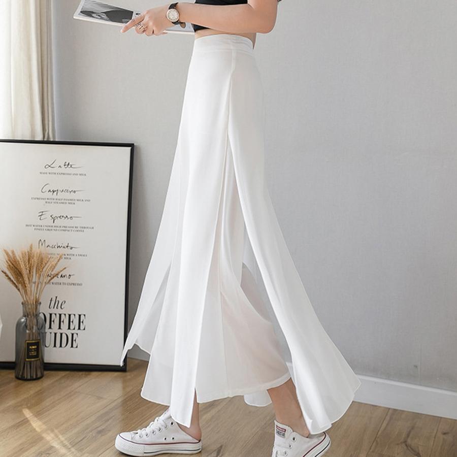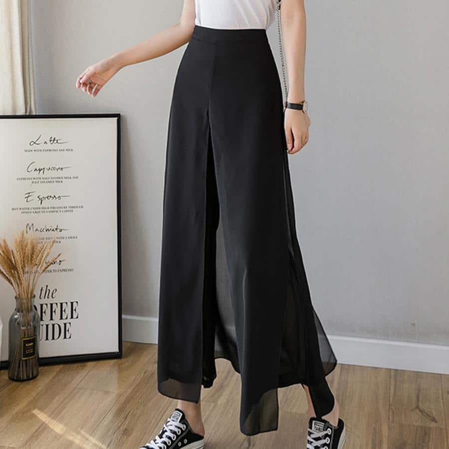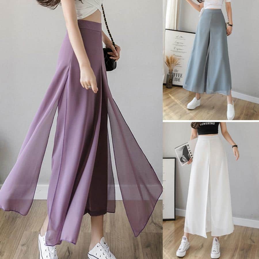 Leveälahkeiset jääsilkkisifonkihousut