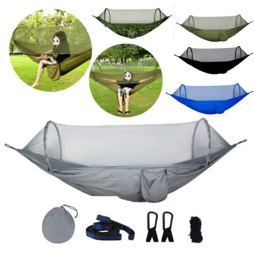 – 1 x retkeilyriippumatto hyttysverkolla