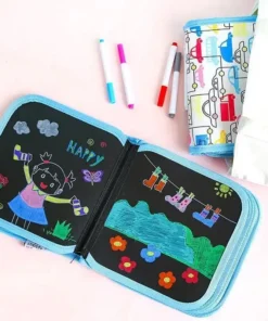 Kannettava pyyhittävä Doodle Pad -piirustusalusta (12 kynää mukana)