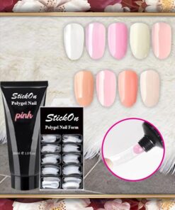 Pakkauksen sisältö: 1 Polygel Nail Kit -sarja (sisältää 1 värillisen polygeelin, 100 kpl tekokynsien muovaajan)
